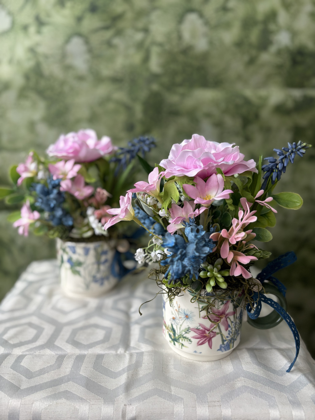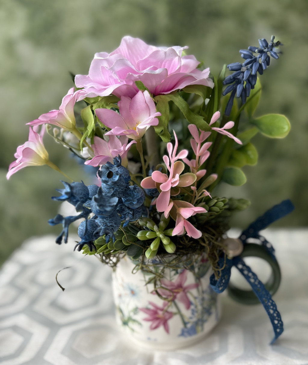 A Virágos reggel asztaldísz természetes hatású virágkompozíciójával, lágy színeivel és finom részleteivel frissességet és eleganciát visz az enteriőrbe.